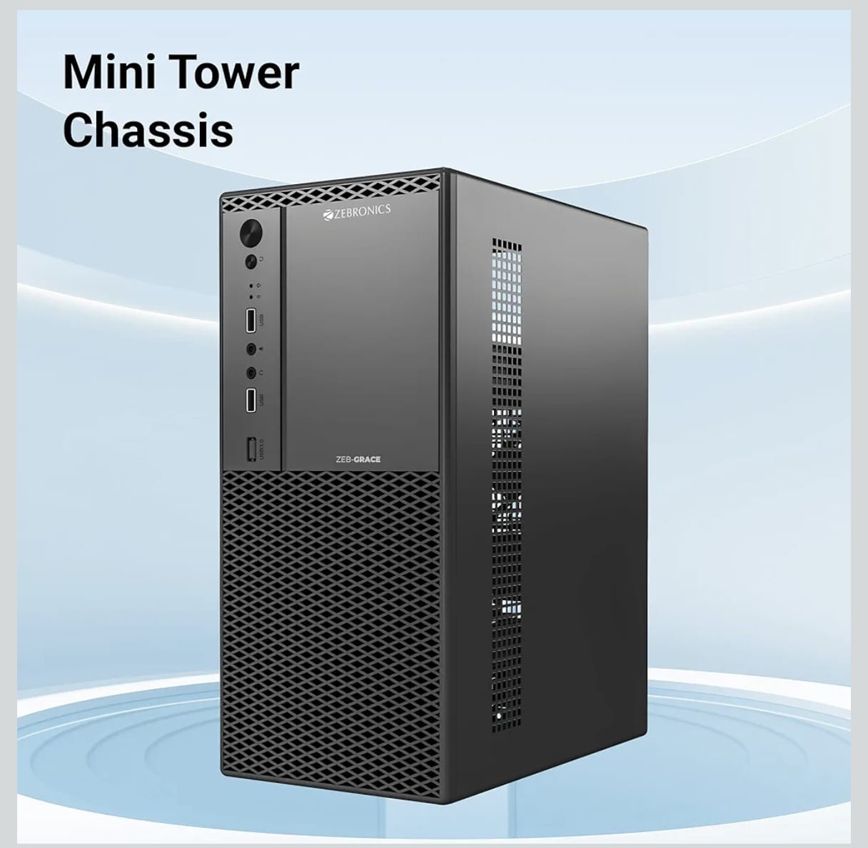 Zebronics Grace, Computer Chassis, Micro ATX/Mini ITX, USB x 2, Front Audio, Perforated Side Panel